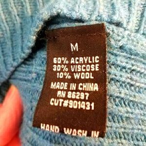Luxurious wool blend 3/4 sleeve muted turquoise sweater from BCBG Max Azria. About 25 inches long. Pit to pit measurement is not really possible (see final photo). Fits oversized. Perfect for cool spring days! Excellent condition.