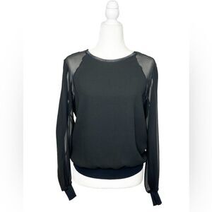 BCBG Max Azria Aliah Sheer Sleeve Top Black Size XXS