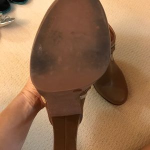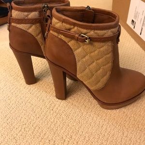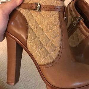Beautiful natural ankle booties with canvas detail. Worn once!! 4.5 inch heel