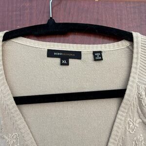 BCBG Max Azria Beige Silk Blend Embroidered Cardigan XL