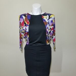 BCBG Max Azria Black Combo Multi colored Printed Jersey Ponte Dress Sz 4 Blouson