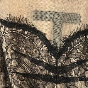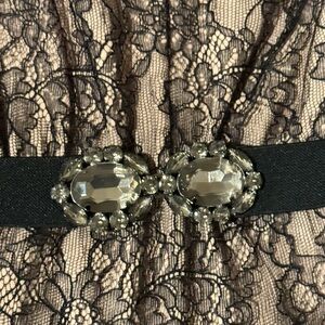 BCBG Max Azria Black Combo Tulle Lace Dress With Belt Sz L
