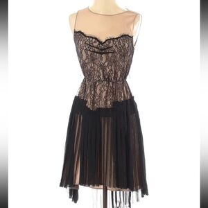 BCBGMaxAzria Black Combo Tulle Lace Dress With Belt Sz L