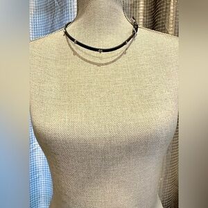 BCBG Max Azria Black Leather Choker Crystal Clovers Chain R $59