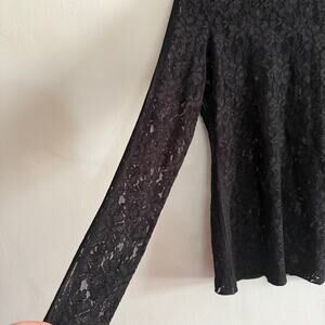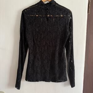 BCBG Max Azria | Black Stretch Lace Slim Fit Mock Neck Shirt | Medium