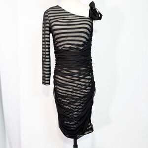 BCBG Max Azria | Black White Striped | One Sleeve Bodycon | Sz S