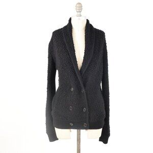 BCBG Max Azria Black Wool Bouclé Yarn Knit Cardigan