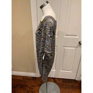 BCBG Max Azria Blue, Yellow, Gray & Black Striped Dress W/ Side Cinch, Size S