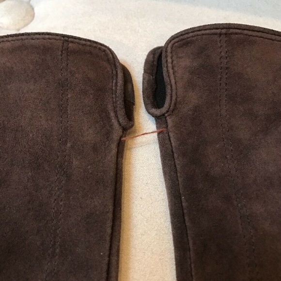 BCBG Max Azria makes a strong statement for Fall / Winter with these brown suede gloves. Perfect for looking great while keeps warm!