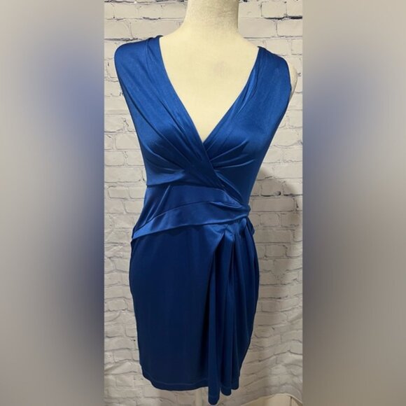 BCBG Max Azria Deep V Front Royal blue Cocktail Dress size XS. Smoke free home. 17" pit to pit, 28" waist and 38" long.