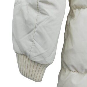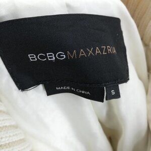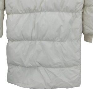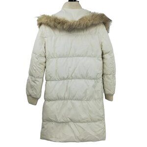 BCBG Max Azria Down Long Puffer Jacket Size S Cream Racoon Fur Collar Double Zip