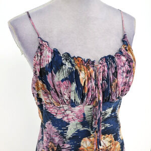 BCBG Max Azria Dress Womens 10 Pink Blue Silk Chiffon Lined Ruched Y2K Vintage