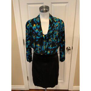 BCBG Max Azria Dress w/ Cowl Splatter Print Top & Black Skirt, Size 4