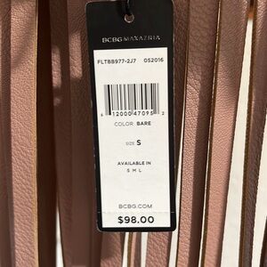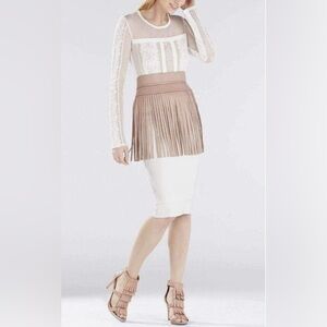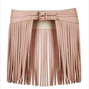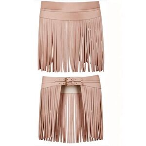 BCBG Max Azria Faux Leather Fringe Belt Skirt – Color Bare – Size S – NWT
