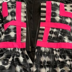 Color - Black White and Gray Ikat Print, with Hot Pink Trim