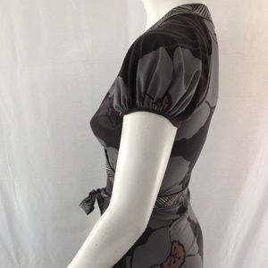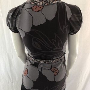 Faux Wrap, Cap sleeve, belted style, abstract, floral print by BCBG Maxazaria. Excellent condition. Size: L