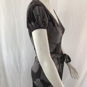 BCBG Max Azria Gray Black Floral Faux Wrap Top L