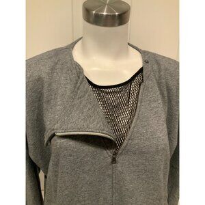 BCBG Max Azria Gray Sweatshirt W/ Pockets & Zip W/ Mesh Neckline, Size M