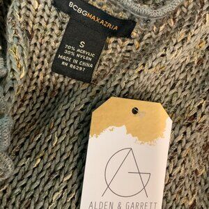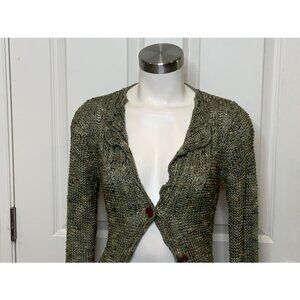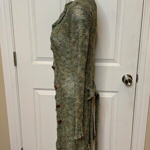 BCBG Max Azria Green Multicolor Long Knit Belted Cardigan, Size S