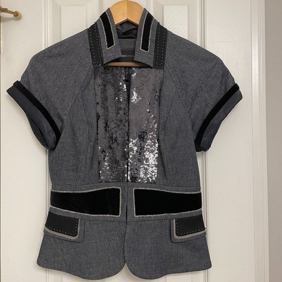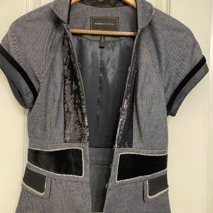 BCBG Max Azria Jacket, open front with pleats and sequins, Black & Gray, Size XS