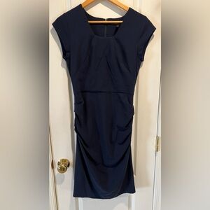 BCBG Max Azria Joana Ruched Fitted Mini Pencil Dress Navy Blue size 6. 39” long, 16” pit to pit. The back slit came unsewn a little hence the low price. Smoke free home.