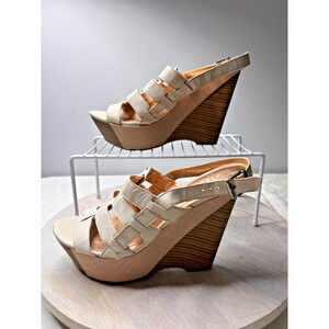 BCBG Max Azria Leather Wedge Sandals Nude Size 9