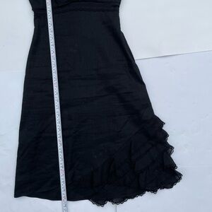 Fully lined linen blend dress with lace, The material composition is 62% linen, 35% Cotton and 3% elastane, opens with a hidden side zipper, asymmetric lace ruffles on the skirt and lace on the waist, top in a cross over supline style. JC163468 Brand :
