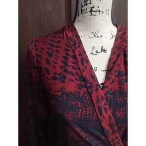 BCBG Max Azria Maroon Navy blue Animal Print Wrap Tie Dress Size Small career