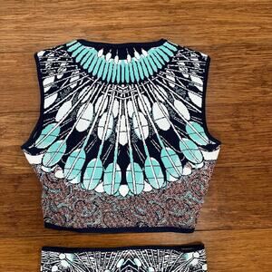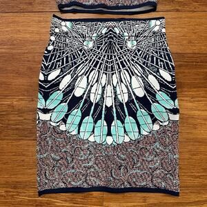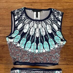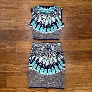 BCBG Max Azria Mayim Jacquard Batik Fan Crop Top and Patel Skirt