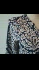 features oversize blue and white floral paisly pattern and piping detail at hem