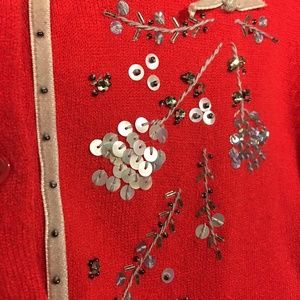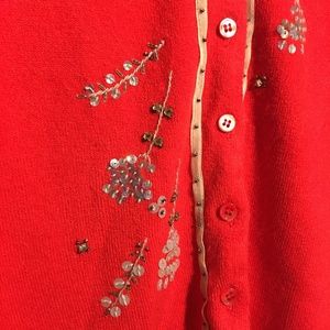 Adorable BCBG Max Azria Pink Sequined and Beaded Cardigan M. Excellent Used Condition. No holes, stains, or pilling. Amazing sequin and bead detail. Two velvet ribbons are on either side of the button front with bead detail. All sequins and beads are intact. Side vents at hem. Great sweater for holiday parties.