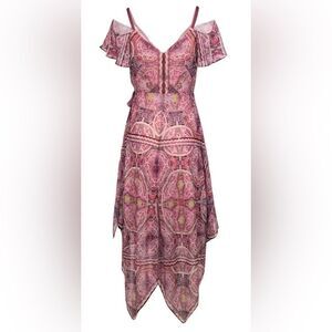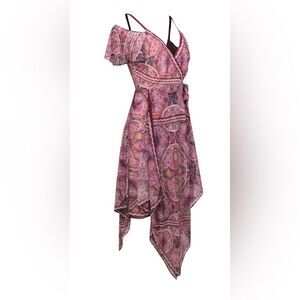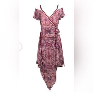 BCBG Max Azria - Purple Boho Printed Wrap Dress W/ Ruffles Sz XXS