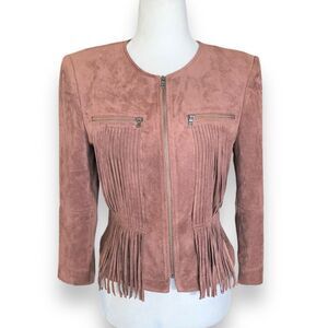 BCBG Max Azria Reiss Vegan Suede Leather Jacket With Fringe Accents