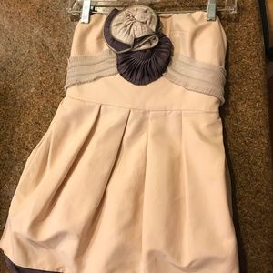 Decorative rosettes with zipper accents embellish the front of this strapless dress for a feminine finish.