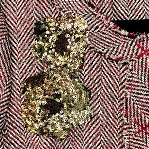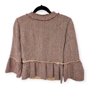 BCBG Max Azria | S | Herringbone Tweed Sequin Floral Bell Sleeve Peplum Blazer