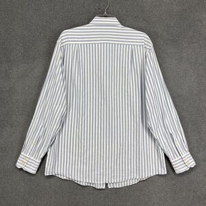 BCBG Max Azria Shirt Mens Large Blue White Striped Slim Fit Cotton Button Up