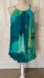 This dress is art-to-wear featuring a vibrant and mesmerizing blue-green watercolor design that adds a pop of color. Features sleeveless design; self tying halter neck. flowing silhouette creates an effortlessly elegant look, while the luxurious silk fabric drapes beautifully. Perfect for summer parties, weddings, or any special event, this dress is designed to make you feel and look like a true goddess. Measurements approximately: 19” bust; 30” length. 100% silk. Dry clean.