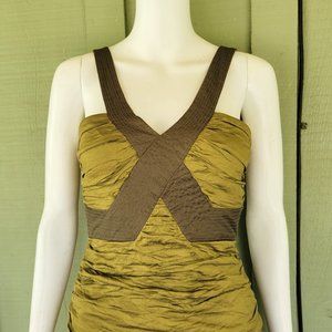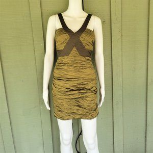 This is a lovely olive green taffeta ruched mini dress from BCBG Max Azria.