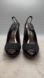 BCBG Max Azria Size 8.5 M Falcon Black Satin Rhinestones Heels Peep Toe Shoes
