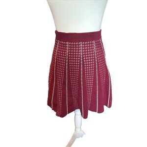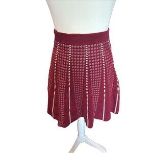 BCBG Max Azria Skirt Scandi Small Red White Flare Sweater Skirt