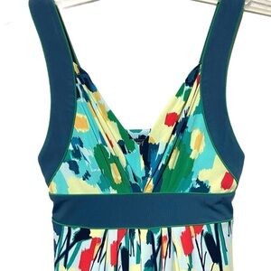 BCBG Max Azria Spring Garden Floral Dress Empire Waist Stretch Tie Back
