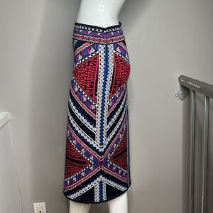 This is a beautiful BCBG Max Azria Sz L Heavy Viscose Elastic Pencil Knee Length Pull On Skirt. Excellent condition. No issues at all. Full length 26” Hips 36” waist 33”