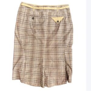 BCBG Max Azria Tan Plaid Skirt size 2 Hi-Lo designer luxury preppy business chic