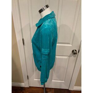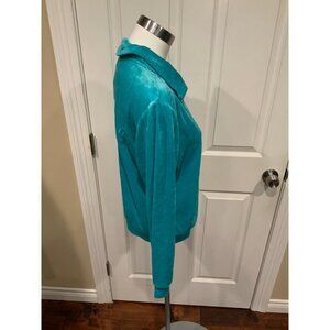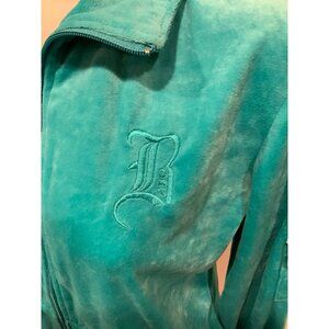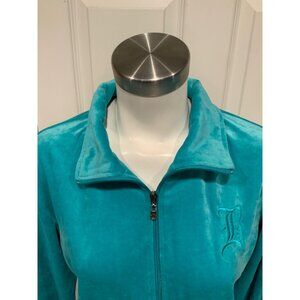 BCBG Max Azria Teal Blue Velour Zip-Up Sweatshirt, Size Large