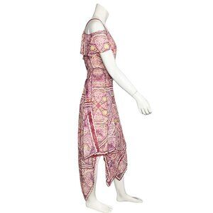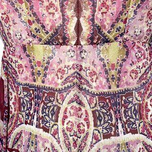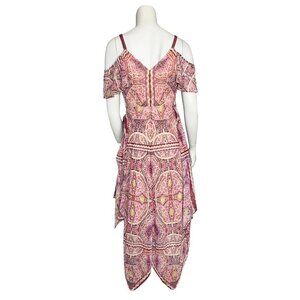 BCBG Max Azria Tibetan Red Paisley Print Cold Shoulder Wrap Festival Dress
