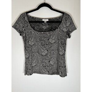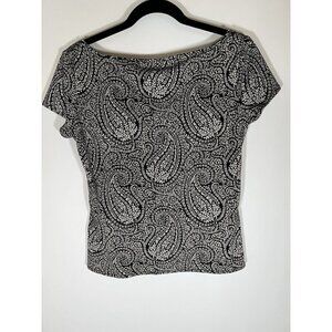BCBG Max Azria Vintage Y2K black white cap slv baby doll paisley top L coquette