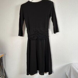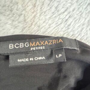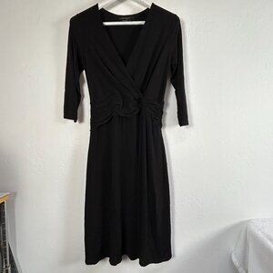 BCBG Max Azria Women’s Black Faux Wrap Dress Large Petite Stretch Midi 3/4 Sleevex
