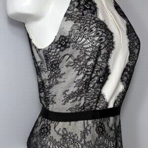 BCBG Max Azria Womens Off White LEYLA Black Lace Halter Ruffle Hem Dress Size 6
