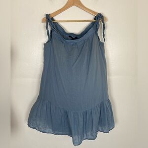 BCBG Max Azria Women's Tunic Top Size L Color Blue Gauze Ruffle Sleeveless