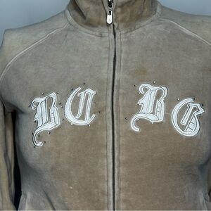 BCBG Max Azria Women's Vintage Y2K velour jacket beige 2 way zipper large GUC